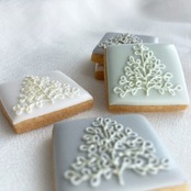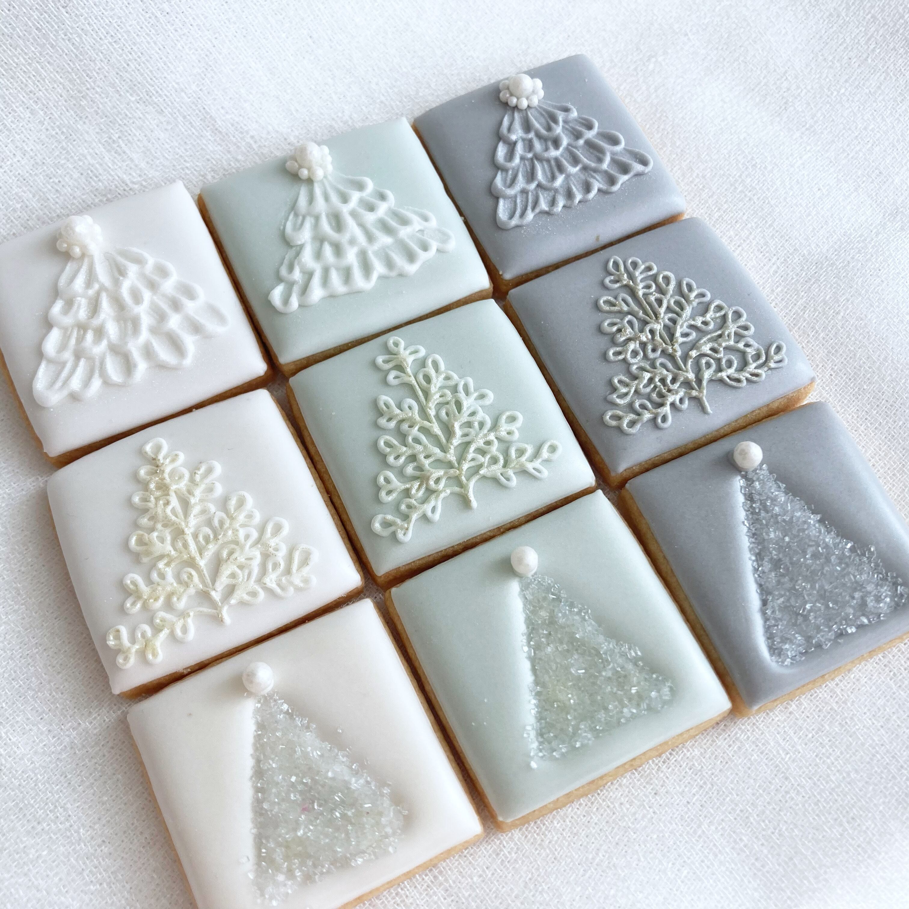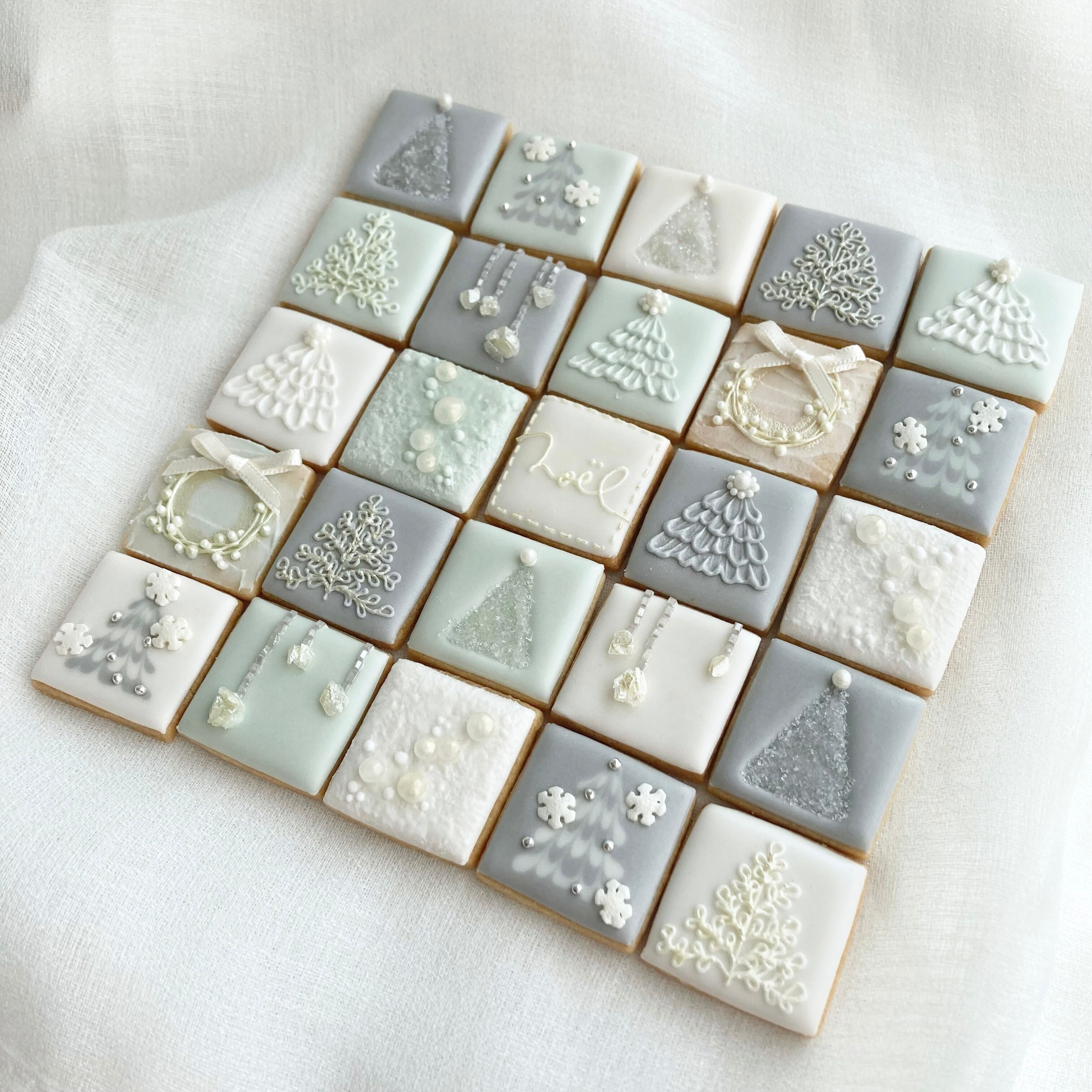 一口サイズの小さなクッキーにクリスマスデザインのアイシングを施します。
